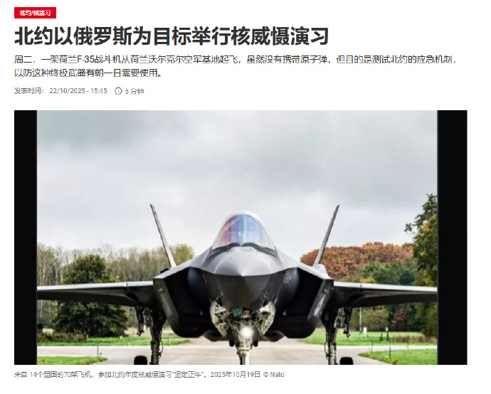 原定于10月下旬举行的美俄高层接触,在最后一刻被无限期推迟。美方称俄方“缺乏实质性进展的诚意”,俄方则指责美国“一边谈对话,一边加大对乌克兰的军事援助”。峰会一黄,局势立马升级——普京当天就下令,俄罗斯战略核力量进入高度战备状态,并启动代号为“雷霆-2025”(Grom-2025)的大规模年度核演习。10月22日当天,俄军从普列谢茨克发射场向远东的堪察加半岛靶场试射了一枚RS-24“亚尔斯”洲际弹道导弹。这型导弹能携带3到6个分导式核弹头,射程超过1.1万公里,足以覆盖美国本土大部分目标。同一天,北方舰队的“北风之神”级核潜艇“弗拉基米尔大公号”在巴伦支海完成了一次水下发射“布拉瓦”潜射导弹的模拟训练。虽然这次没有实弹发射,但整套作战流程全部走通,包括目标锁定、发射序列启动和通信中继测试。更让西方紧张的是,俄罗斯国防部公开了演习细节。他们明确表示,此次“雷霆”演习覆盖陆、海、空三大核打击平台,参演单位包括战略火箭军、北方舰队和远程航空兵。仅战略火箭军就调动了超过70辆导弹发射车,在西伯利亚和乌拉尔地区进行了大范围机动演练,模拟在核战背景下“打游击、打运动战”的生存反击能力。面对俄罗斯的强硬动作,北约这边立刻“针锋相对”。也是在10月22日,也就是普京下令演习的同一天,北约宣布启动“坚定正午”(Steadfast Noon)年度核威慑演习。在荷兰的沃尔克尔空军基地,一架F-35A隐形战斗机挂载了模拟核弹的训练吊舱,滑行、起飞,执行了完整的空中待命任务。这架战机隶属于荷兰空军,但其任务是北约核共享机制的一部分——平时由非核国家飞行员训练携带美国B61-12核炸弹,战时可在授权下执行核打击任务。从美俄峰会搁置、普京下令演习、北约同步反制,这三个动作在24小时内接连发生,节奏紧凑得像一场精心编排的对抗剧。这说明什么?说明高层对话一旦中断,核威慑就成了唯一“有效”的沟通语言。
